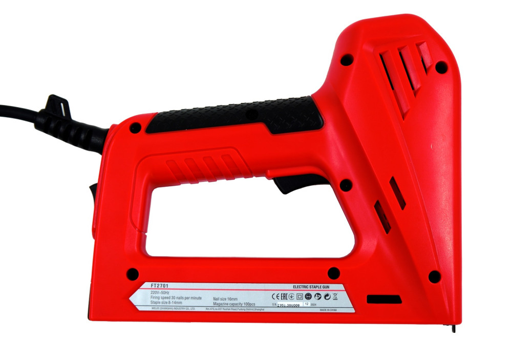 Степлер электрический FELISATTI FT2701 имеет высокую частоту ударов (30 уд/мин) и использует гвозди длиной до 16 мм, обеспечивая быструю и эффективную работу.