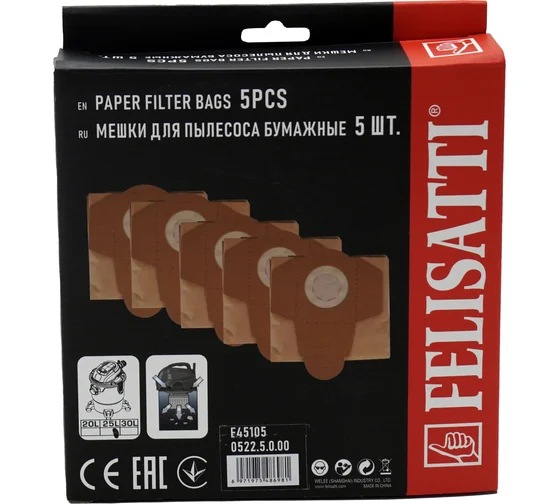 Купить инструмент Мешки FELISATTI бумажные для пылесоса (в комплекте 5шт.) ПП-30/1400 в Красноярске по цене 1090 рублей. Смотрите другие 3 товаров в разделе Мешки, фильтра для пылесосов по ценам от 490 до 1090 рублей. Родительская категория - Расходные материалы для электроинструмента. Производитель - FELISATTI.