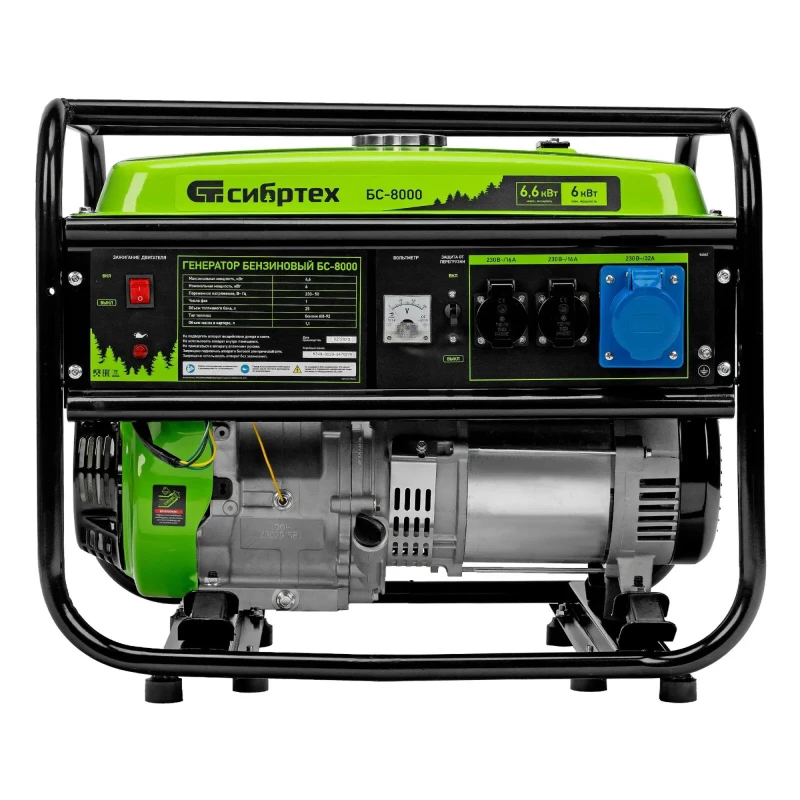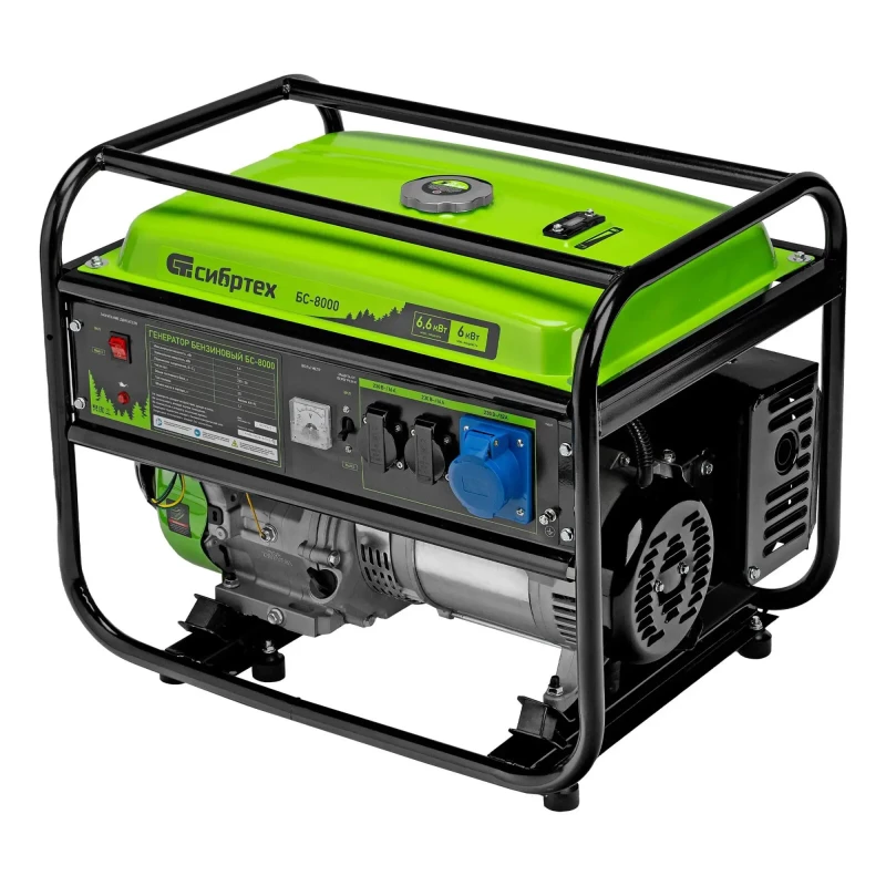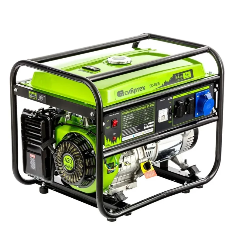 Купить инструмент Генератор бензиновый БС-8000, 6,6 кВт, 230В, четырехтактный, 25 л, ручной стартер Сибртех в Красноярске по цене 47790 рублей. Смотрите другие 69 товаров в разделе Электростанции бензиновые по ценам от 9990 до 363390 рублей. Родительская категория - Силовое оборудование. Производитель - Сибртех.