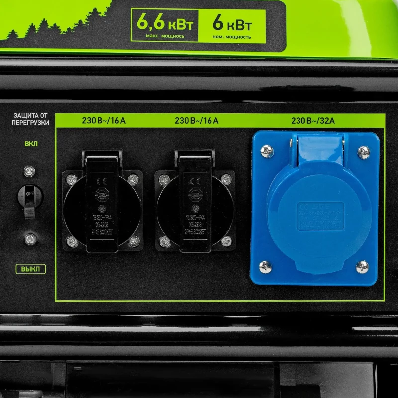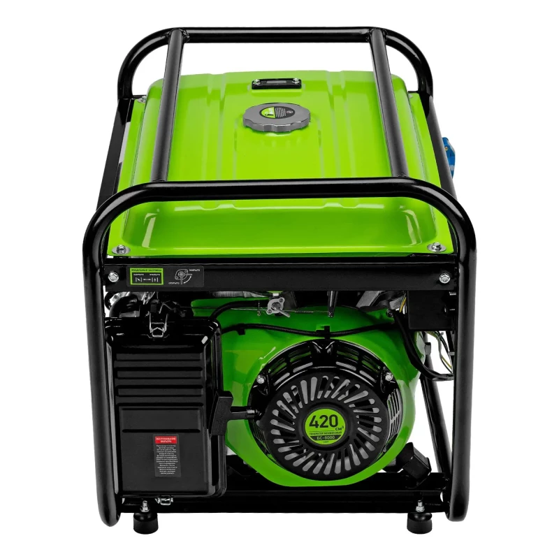 Бензиновый генератор Сибртех БС-8000 94547 на 230 В, с 4-тактным двигателем, с ручным стартером и баком объемом 25 л, вырабатывает 6,6 кВт и отлично подойдет для дачи, стройки, торговой палатки, гаража или мастерской. Высокая мощность и наличие силовой розетки позволяют одновременно подключить мощный водяной насос, электроплиту, а также обеспечить освещение рабочего места. Преимущества: Работа без скачков напряжения — благодаря блоку AVR к генератору можно подключать даже чувствительную технику. Простая эксплуатация — все элементы управления расположены на передней панели. Контроль рабочих параметров — встроенный вольтметр позволяет отслеживать напряжение в сети, а топливный индикатор — уровень бензина в баке. Защита поршневой группы — специальный датчик не допускает старт генератора с низким уровнем масла в картере. Низкий расход топлива — бака объемом 25 л хватает на 8,3 ч работы без дозаправки. Надежность — защита от перегрузки и короткого замыкания продлевает срок службы генератора. Стабильная работа двигателя — медная обмотка альтернатора и металлический распредвал выдерживают высокие нагрузки, система воздушного охлаждения обеспечивает эффективный отвод тепла. Прочная конструкция — стальная рама надежно защищает генератор от повреждений.