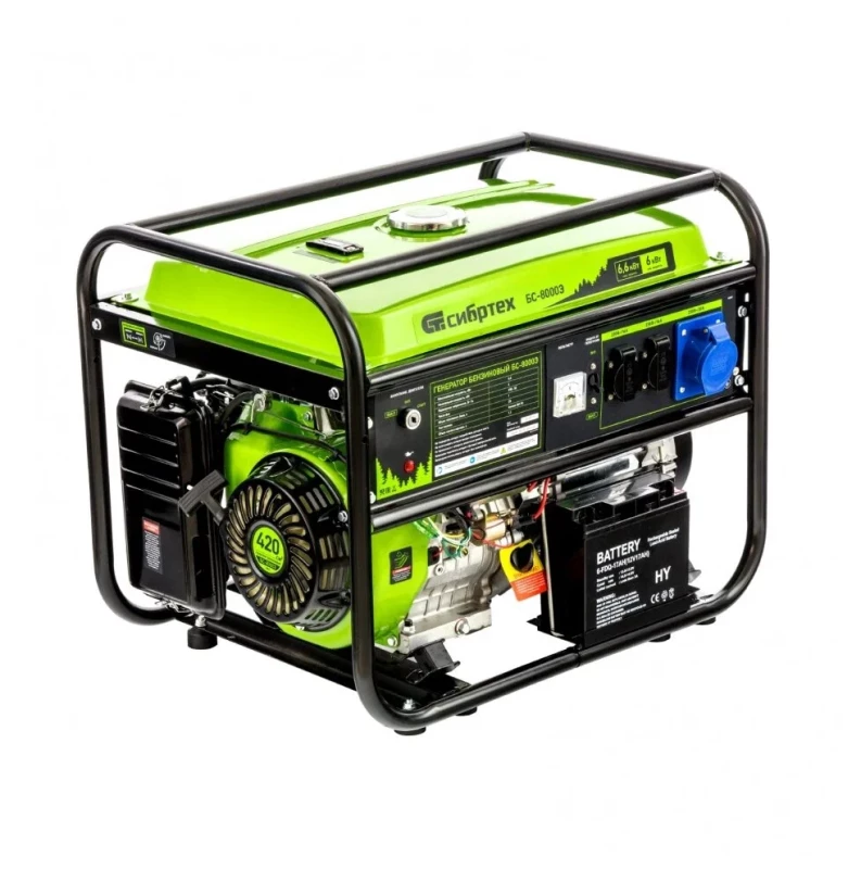 Купить инструмент Генератор бензиновый БС-8000Э, 6,6 кВт, 230В, четырехтактный, 25 л, электростартер Сибртех в Красноярске по цене 51790 рублей. Смотрите другие 69 товаров в разделе Электростанции бензиновые по ценам от 9990 до 363390 рублей. Родительская категория - Силовое оборудование. Производитель - Сибртех.