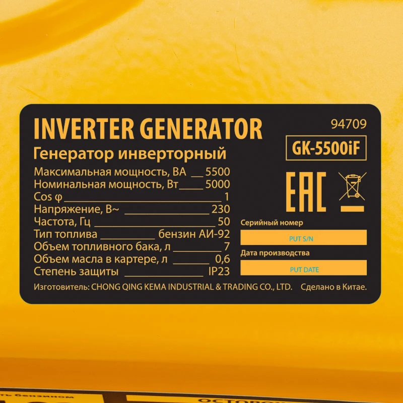 Генератор инверторный GK-5500iF, 5,5 кВт, 230 В, ручной старт DENZEL