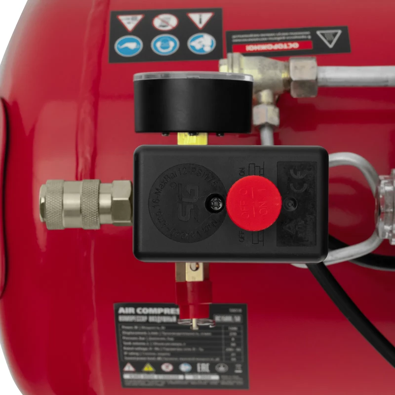 Удобный контроль давления в ресивере — компрессор оснащен механическим манометром.