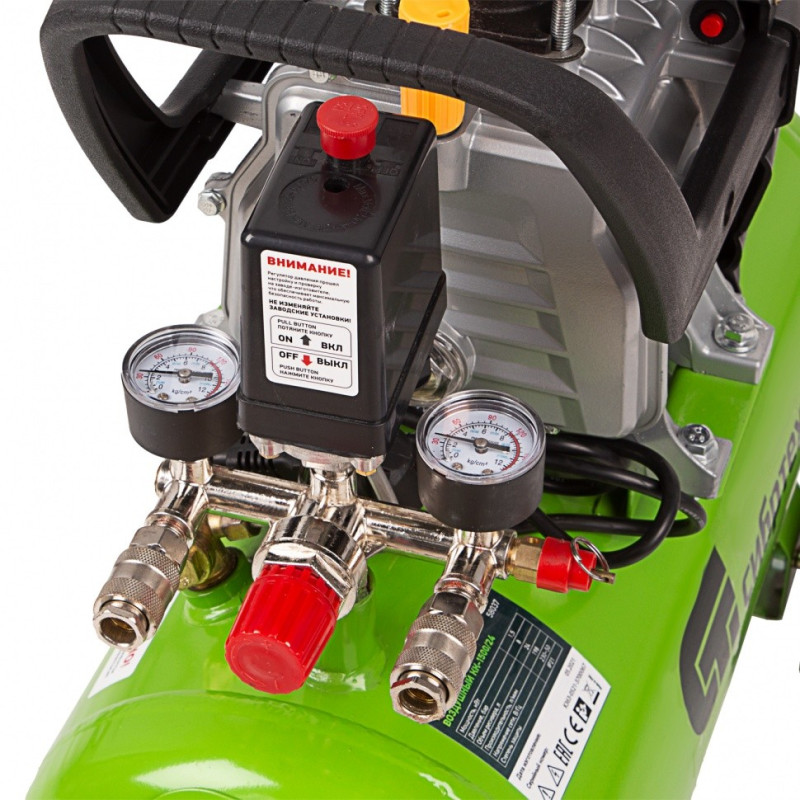 Компрессор Сибртех КК-1500/24 предназначен для продувочных и ремонтных работ, подкачки шин на небольших производствах, автосервисах, гаражах и в домашних условиях. Сжатый воздух накапливается в компактном ресивере на 24 л, затем поступает к пневматическому инструменту: шуруповерту, степлеру и др. Несмотря на небольшой вес, компрессор оснащен мощным двигателем, способным обеспечить стабильно высокую производительность в 198 л/мин. Аккуратная и прочная фиксация обмотки двигателя, а также увеличенный размер магнитопровода статора дополнительно повышают надежность и ресурс изделия.